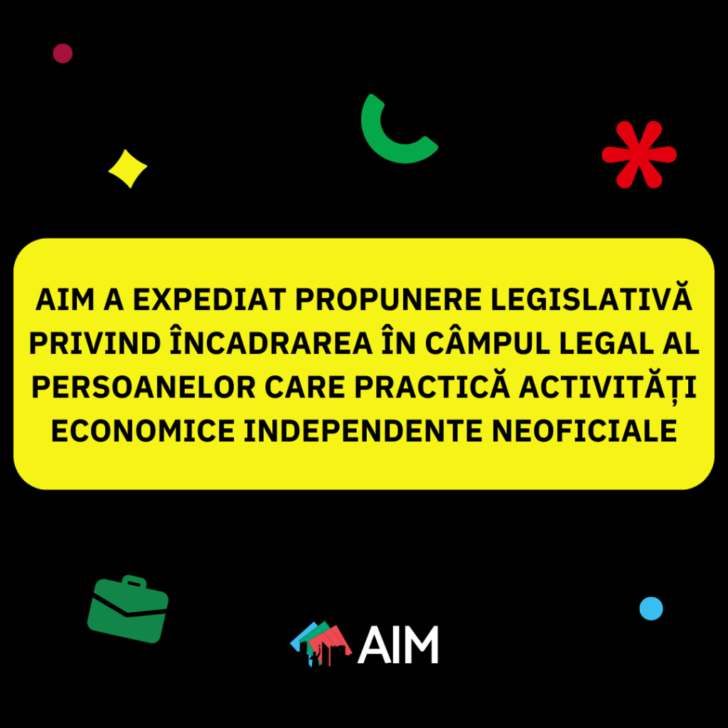 AIM A EXPEDIAT PROPUNERE LEGISLATIVĂ PRIVIND ÎNCADRAREA ÎN CÂMPUL LEGAL AL PERSOANELOR CARE PRACTICĂ ACTIVITĂȚI ECONOMICE INDEPENDENTE NEOFICIALE