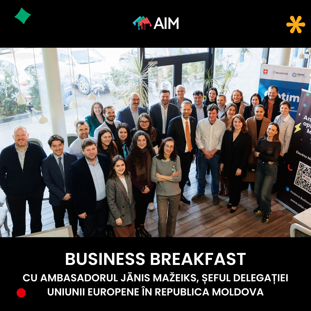 În data de 22 februarie, membrii comunității AIM au participat la Business Breakfast alături de Ambasadorul Jānis Mažeiks, Șeful Delegației Uniunii Europene în Republica Moldova.