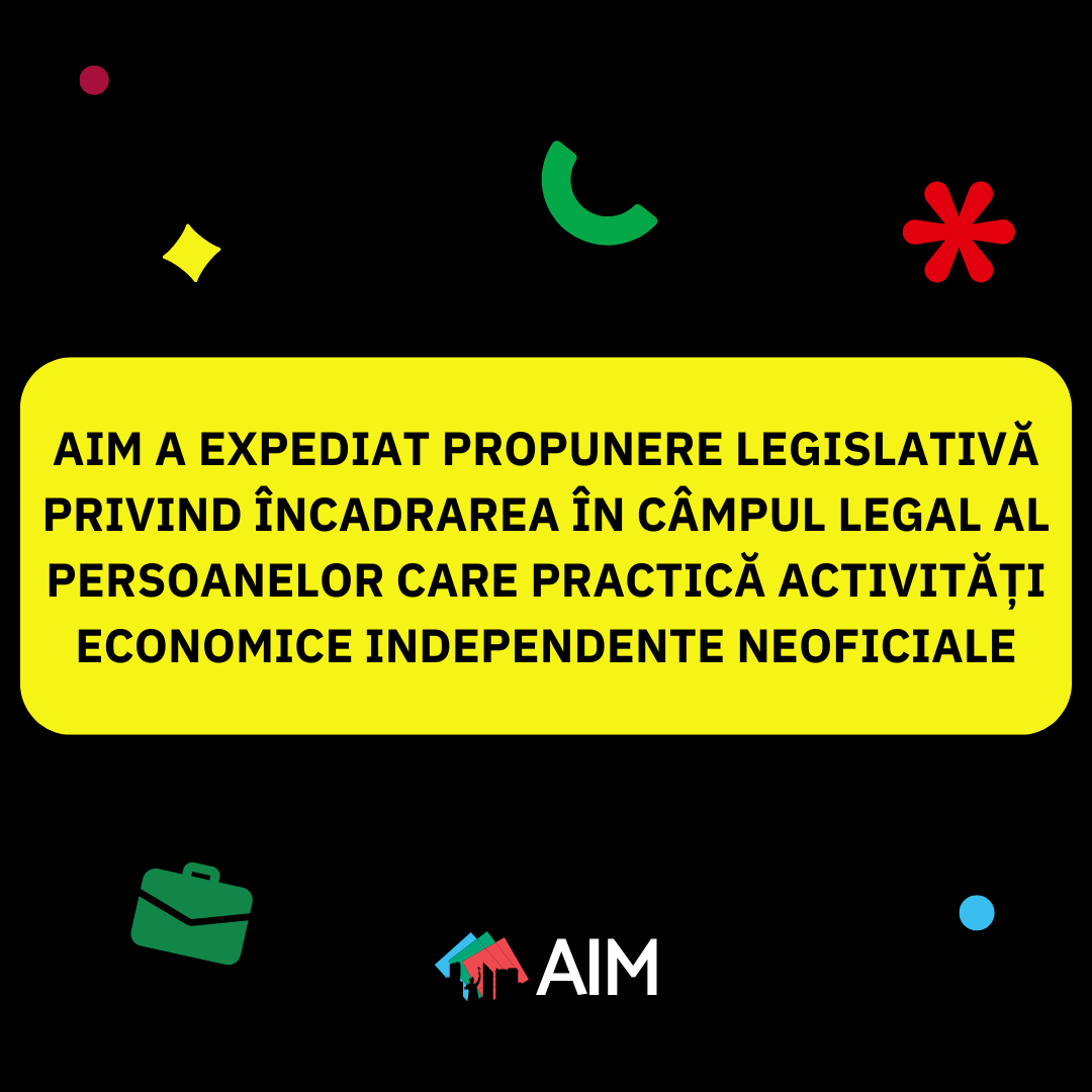 AIM A EXPEDIAT PROPUNERE LEGISLATIVĂ PRIVIND ÎNCADRAREA ÎN CÂMPUL LEGAL AL PERSOANELOR CARE PRACTICĂ ACTIVITĂȚI ECONOMICE INDEPENDENTE NEOFICIALE septembrie 9, 2024septembrie 5, 2024